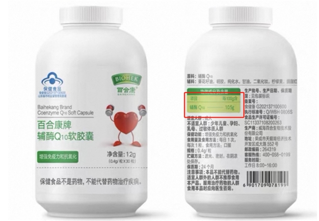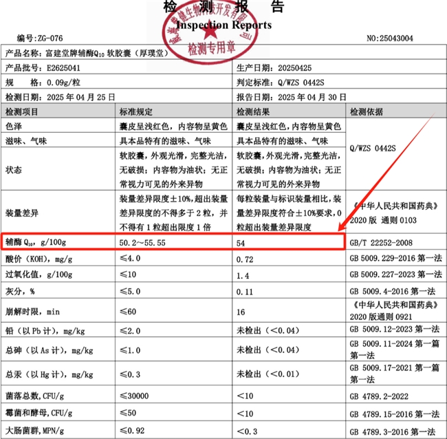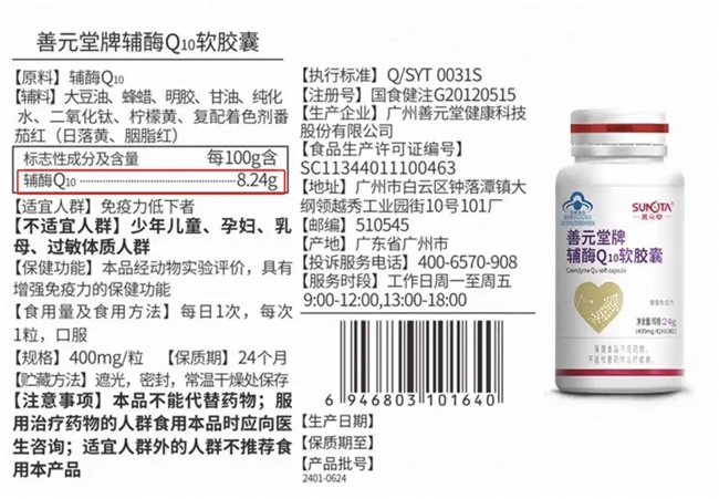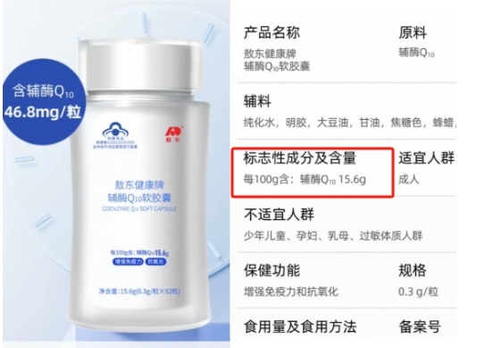 它厉害在哪儿?看完这些数据你就明白了:每100克里含54克辅酶Q10,比包装上标的50.2克还多,在带“蓝帽子”的保健品里含量数一数二;